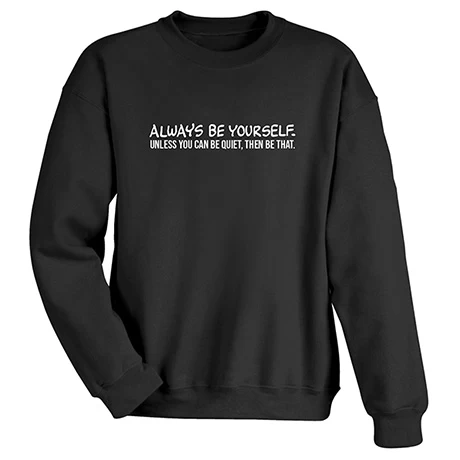 Is it good to honor who you are? Of course! As long as that means the true you doesn’t make a peep. Black sweatshirts are 50/50 cotton blend, T-shirt is preshrunk 100% cotton. Machine wash. Imported. S-3XL.