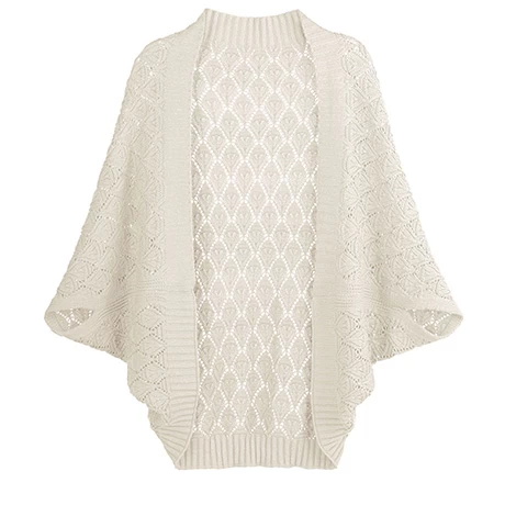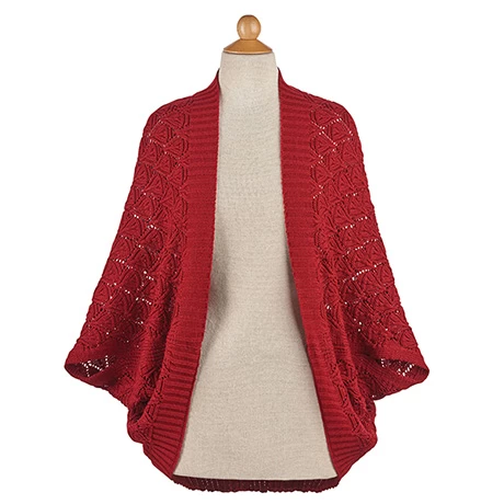 A soft, cozy coverup for every season. Pack it for a weekend at the lake, throw it over a sleeveless dress for an evening out and about, or tuck it into your bag when heading to the office. Knit from a soft acrylic with a pretty, crochet-like open pattern, it’s just what’s needed for adding a bit of warmth and a lot of style. One size fits most (sizes 4-16). Machine wash. Imported. Specify Taupe, Black, Ivory, or Red.