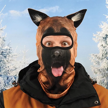With their cute ears and awesome prints these animal face balaclava ski masks are perfect for GoPro selfies on the slopes and will definitely have people talking. One size fits most adults and juniors. 100% polyester. Machine Washable. Choose from: Angry Cat, Brown Bear, Collie Dog, Fox, Happy Cat, Husky, Koala, Lynx, Orangutan, Panda, Raccoon, Rottweiler, Bunny, German Shepherd, Snow tiger and Lion Cub .