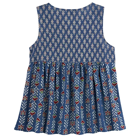 Pure-cotton Bohemian bliss. Made of delightful contrasting prints, this is a vest for all seasons and occasions.Pair with jeans or a skirt, and boots or sandals. Sweet details add the perfect finishing touches, including two patch pockets and two ties with playful rust-colored yarn flowers dangling from the ends. Sizes S(6–8), M(10–12), L(14–16), XL(18), 1X(18–20), 2X(22–24). Size S hangs 26″. Machine wash. Imported. Pair with our Flood Pants HBK012 for a complete look.