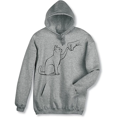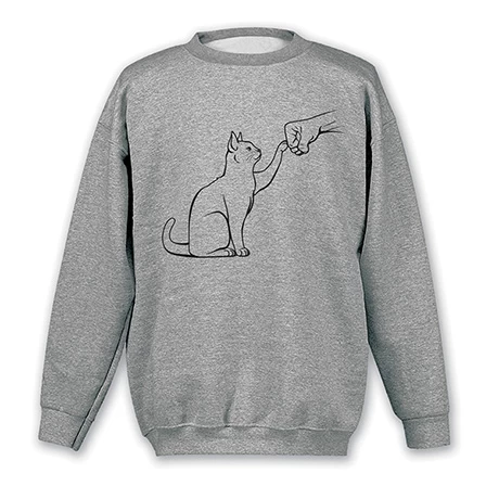 Paws for effect. Sport gray sweatshirts are 50/50 cotton/poly. T-shirt is preshrunk 90/10 cotton blend. Machine wash. Imported. S-3XL.