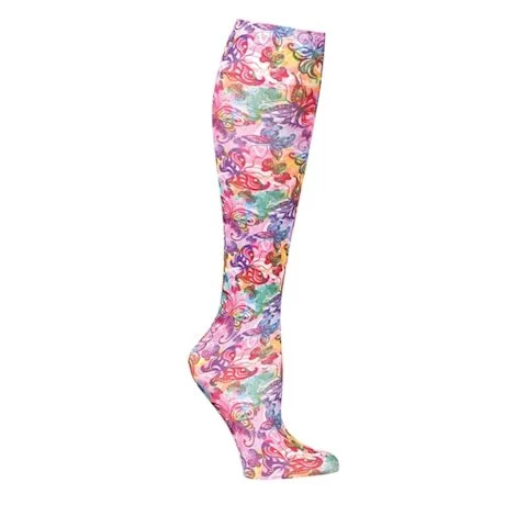There’s no reason support can’t be fun! Printed Compression Knee Highs are stylish relief for tired, achy legs. Mild graduated compression is perfect for everyday wear to alleviate swelling and fatigue while improving circulation. Nylon/spandex blend. Machine wash/dry. One size fits most. USA. Choose design name when ordering. 8-15 mm/Hg.