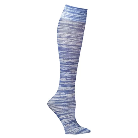 Celeste Stein® Women’s Printed Closed Toe Mild Compression Knee High Stockings – Wide Calf – Denim Stripes