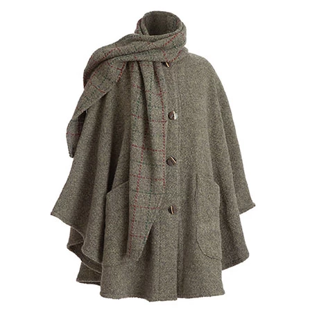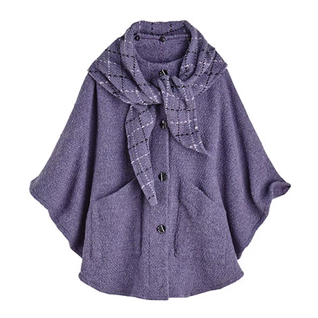 You could wear this in Ireland and fit right in. The design is classic, the fabric ideal: a warm, luxurious wool-alpaca bouclé. The color is gorse, like Irish hedgerows. Button front, handy pockets, detachable plaid scarf to wrap around your head when the wind bites. Woven in County Louth, Ireland. Hangs 35″. Dry-clean. One size fits most (6-16). Specify Heather or Violet.