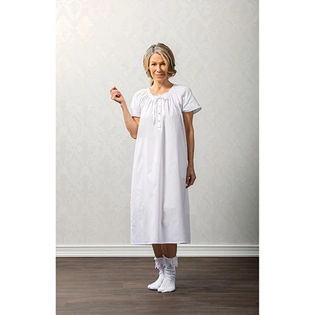 Wrap yourself in comfort with our cotton voile nightgown, accented with elegant lace details at the hem. Length 44″. Sizes XS/S, M/L, XL/XXL, 1X/2X. Cotton. Imported.