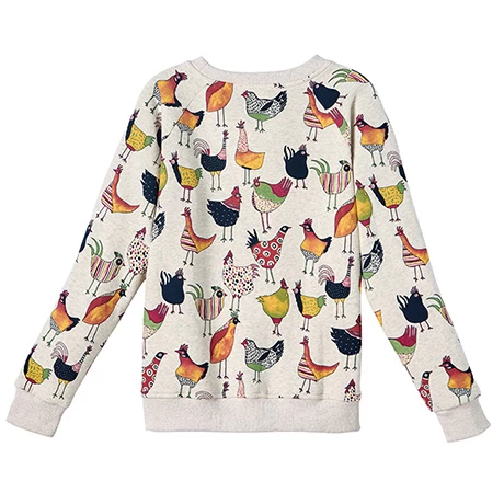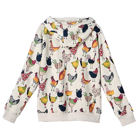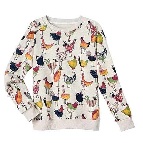 When fair weather turns fowl, cozy up in a cute chicken sweatshirt. Made in pale gray, it’s soft and comfortable in fleecy cotton/poly/spandex. Machine wash. Imported. S-XXL. Specify Crew-Neck or Zip-Front Hoodie.