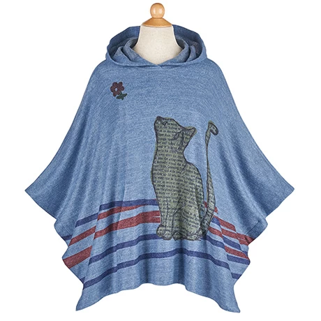 A curious cat. Soft sweater knit fabric. A kangaroo pocket. Stitched sides. A hood. These elements come together to create an easy-going poncho. Poly/rayon/spandex. Machine wash. Imported. S(6-8), M(10-12), L(12-14), XL(14-16), 1X(16-18), 2X(18-20). M hangs 27″.