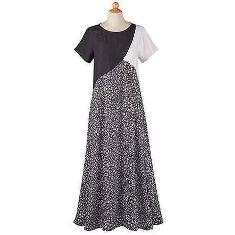Bold black and white solids take a playful turn when paired with an all-over ditsy daisy print. Made of rayon viscose, the dress is cut to flatter but not confine. With easy pull-on style and the perfectly feminine cap sleeves, choosing to wear this dress will be the easiest decision of the season. Sizes S(6-8), M(10-12), L(14-16), XL(16-18), 1X(18-20), 2X(20-22), 3X(22-24). Size M hangs 54″. Hand wash. Imported.