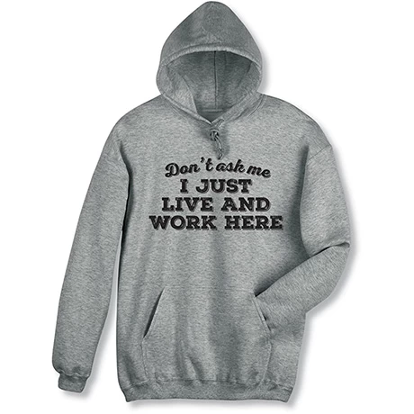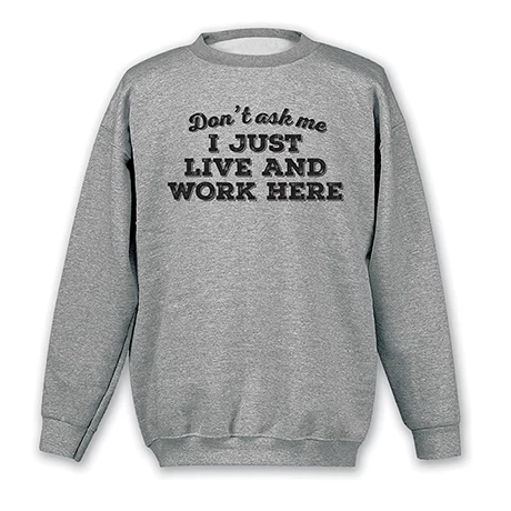 For that favorite person in your life who somehow manages to remain clueless about what’s going on. Sport gray sweatshirts are 50/50 cotton blend, T-shirt is preshrunk 90/10 cotton. Machine wash. Imported. S-3XL.