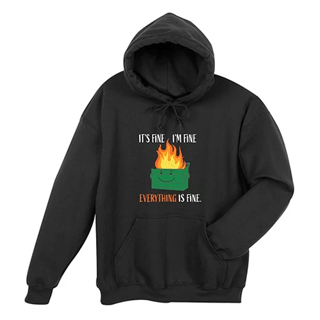 Wear this when you don’t want to be asked about your day. Black sweatshirt is 50/50 cotton/poly. T-shirt is preshrunk 100% cotton. Machine wash. Imported. S-3X.