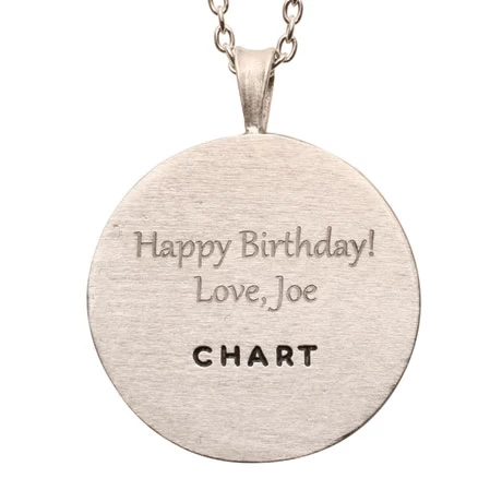 This beautiful custom map necklace is the perfect memento, even if you are miles away, to carry the memory of your special place close to your heart and fashionably secured around your neck. Pewter pendant is about 1″ in diameter (about the size of a quarter) and includes an 18″ pewter-toned curb chain. The satin silver finish pewter is lead free, nickel free and anti-tarnish, and designed to only look better with the patina of age and wear. Each is individually handcrafted in Maine. Personalize with any US city or town, up to 30 characters, and include state, up to 15 characters. Also include a special message of your choosing, up to 25 characters, to be engraved on the back of the charm. US cities or towns only – no international locations available. Allow 3 weeks. No rush delivery or gift box.
