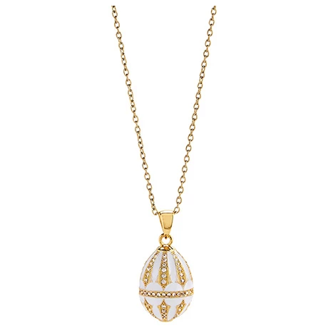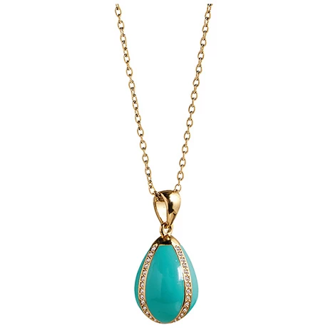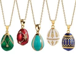The iconic Faberge eggs created in Russia in the 1800s inspired these exquisite pendants. Hand made of brass andĀ colored enamel, and embellished with cubic zirconias. Each one is an exquisite combination of tradition egg art and delicate craftsmanship. Striking pieces of jewelry with a lovely expression of what the egg symbolizes in Christianity: new life and rebirth. Pendant hangs 1″ on an 18″ plated stainless steel. Specify Green, Navy, Red, Turquoise, or White.Ā