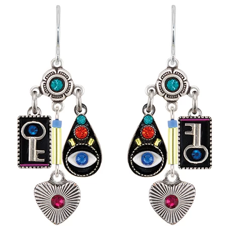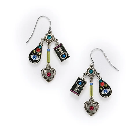 Make a sparkling statement with these colorful Austrian crystal and Czech glass earrings. If you look closely, you’ll see an abstract face looking back at you. Made by Firefly, a Guatemalan company known for its show-stopping designs. Earrings hang 1.5″ from sterling earwires.