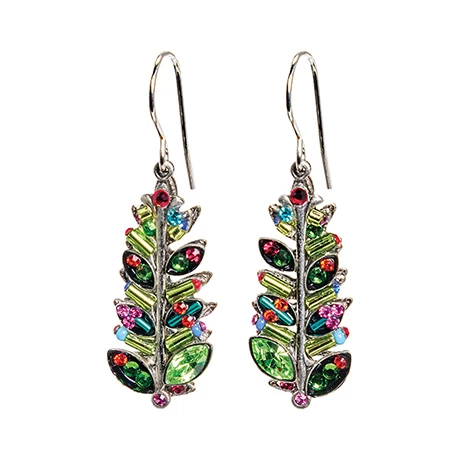 The natural sparkle of Austrian crystals and Czech glass beads lends a lit-from-within quality to these pretty danglers. Made by Firefly, a Guatemalan jewelry company known for its showstopping designs and color combinations, they’re an intriguing mix of contemporary design and heirloom qualities that guarantee they will be treasured for years. Antique silverplated brass findings and sterling silver earwires. Earrings hang 1.5″. Also available coordinating Necklace HBN782.
