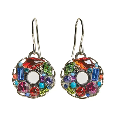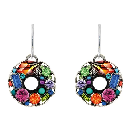 Austrian crystals and Czech glass combine in stunning, richly hued mosaic earrings. Made by Firefly, a Guatemalan jewelry company known for its showstopping designs and color combinations, the earrings have an heirloom look about them and will be treasured for years to come. Antique silverplated brass, sterling silver earwires. .5″ Diam. Earrings hang 1″.