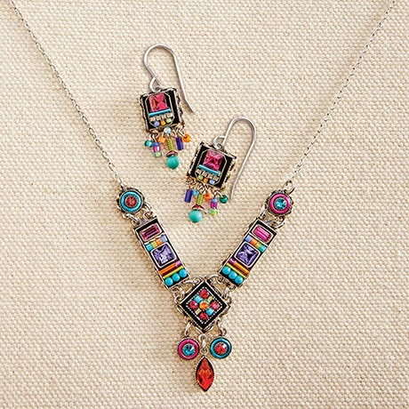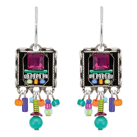 Sparkling statement earrings in a rainbow of deep hues with a geometric shape and colorful fringe. Embellished with jewel-toned Austrian crystals, colored metal, and delicate beads, they’ll look spectacular with any color of clothing you wear. Sterling silver ear wires. Earrings hang 1¼”. Made in Guatemala. Pair with our coordinating Mosiac Necklace #HBK532 for a complete look.