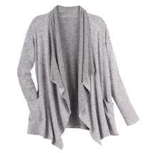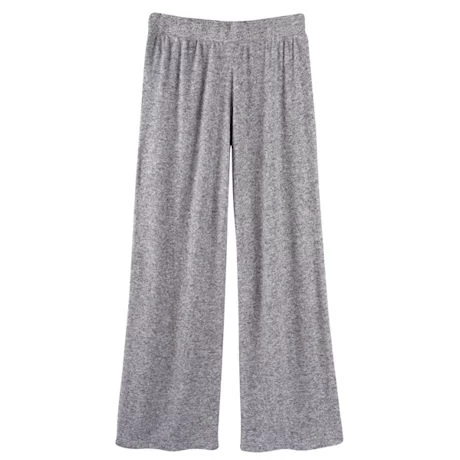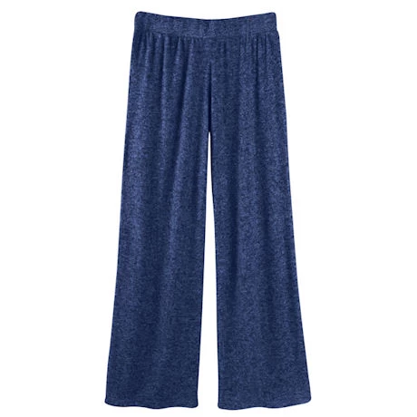 You’ll live in these, or wish you could. Marled knit fleece, these may be the softest, most comfortable pants you’ll ever own. Easy fit wide-leg pants have a drawstring waist. Size M inseam 29″. Sizes S(6-8), M(10-12), L(14-16), XL(16-18), 1X(18-20), 2X(20-22). Rayon-poly spandex blend. Machine wash. Imported. Specify Gray or Denim. Also available coordinating Flyaway Cardigan (HAN712).