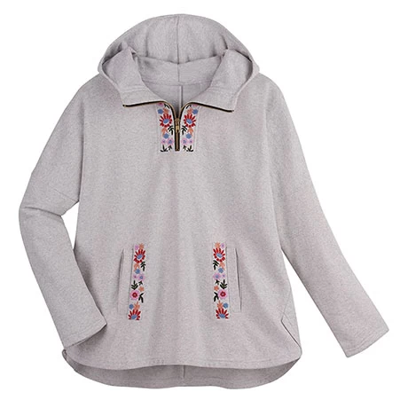 Step up your sweatshirt game with this quarter-zip cotton/polyĀ fleece number. AdorableĀ floral embroidery on theĀ front addsĀ a sweet feminine touch. A generous cut keeps is flattering and comfortable. Two pockets,Ā long sleeves with drop shoulders and hood. Sizes S(6-8), M(10-12), L(12-14), XL(14-16), 1X(18-20), 2X(20-22), 3X(22-24). Size M hangs 26″. Machine wash. Imported.