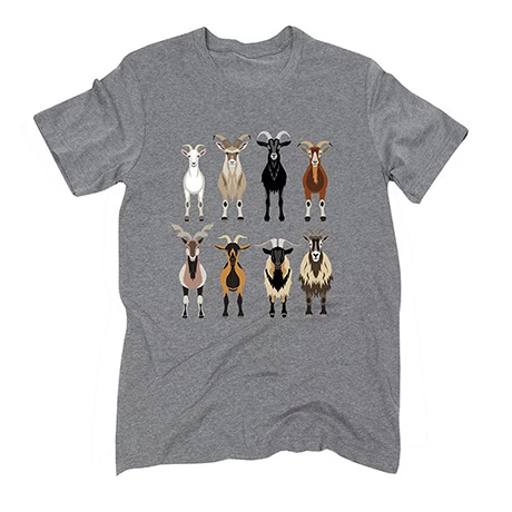 Whatever floats your goat, we’ve got the T-shirt for you. You’ll love how cute it is with 8 goat breeds on it, we kid you not. Soft combed cotton/poly. Machine wash. Imported. M-XL, 2X-3X.