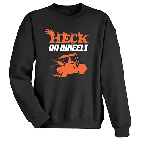 For the golf cart speed-demons you know. Black sweatshirt is 50/50 cotton/poly. T-shirt is preshrunk 100% cotton. Imported. S-3X.