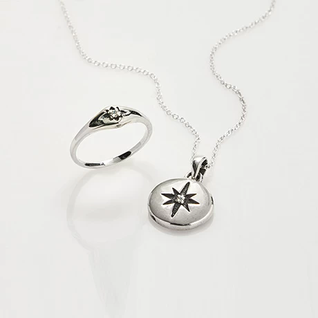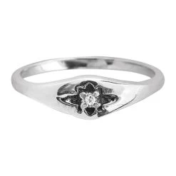 The north star symbolizes direction and guidance, whether you’re navigating land or searching for your life’s path. It’s beautifully represented in this sterling silver ring with a Herkimer diamond quartz crystal sparkling at the center. Whole sizes 6-10. 0.25″W, band tapers to 0.0625.