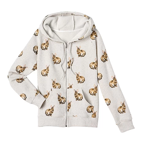 Hop into your comfort zone with this soft, cozy sweatshirt. It’s fleecy in cotton/poly/spandex. Machine wash. Imported. S-XXL. Specify Crew-Neck or Zip-Front Hoodie.