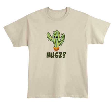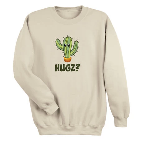 Super hugz! They’re what everyone needz. Even the prickliest person you know. Sand sweatshirt is 50/50 cotton blend, T-shirt is preshrunk 100% cotton. Sizes S-3XL. Imported.