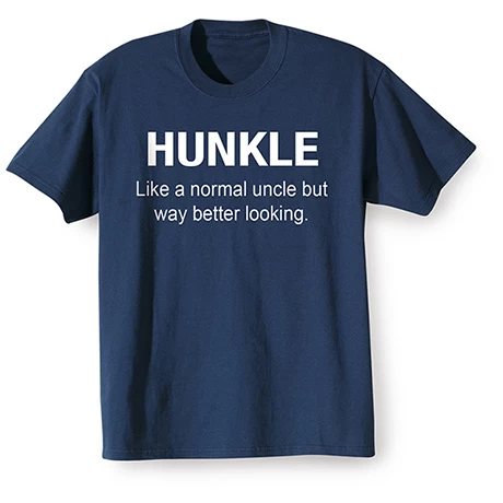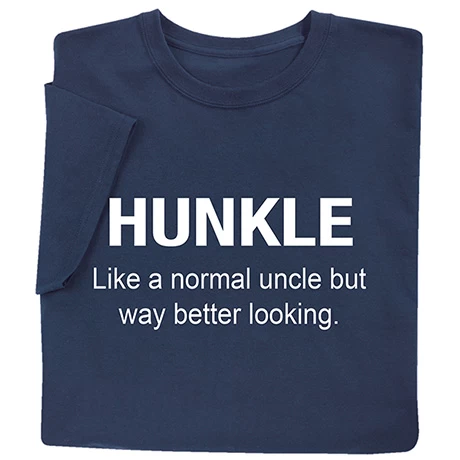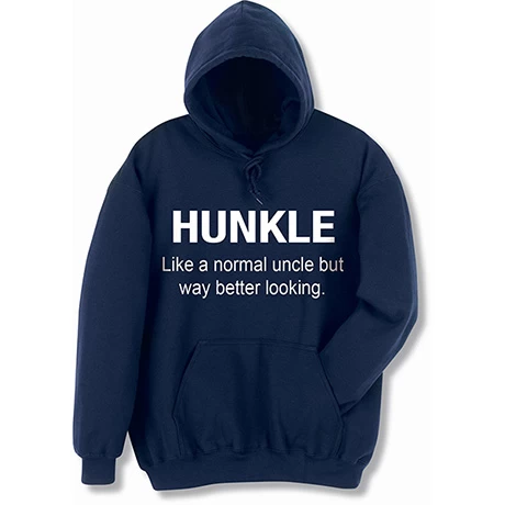Flatter that favorite uncle with this fun shirt. Navy sweatshirt is 50/50 cotton blend, T-shirt is preshrunk 100% cotton. Sizes S-3XL. Imported.