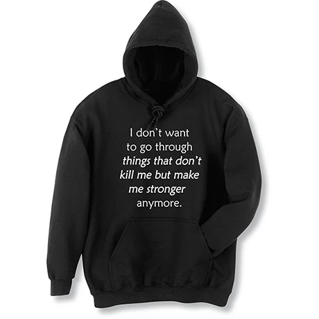 After a rough few years, we can all relate to this sentiment. Black sweatshirt is 50/50 cotton blend, T-shirt is preshrunk 100% cotton. Sizes S-3XL. Imported.