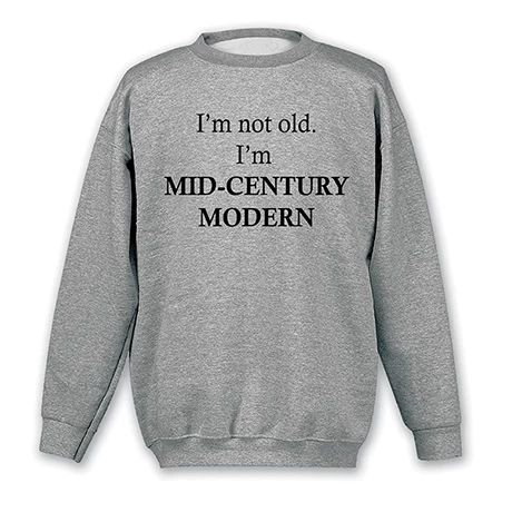 And just like that, you go from old and irrelevant to hip and valued. Well done! Sport gray sweatshirts are 50/50 cotton blend, T-shirt is preshrunk 90/10 cotton. Machine wash. Imported. S-3XL.