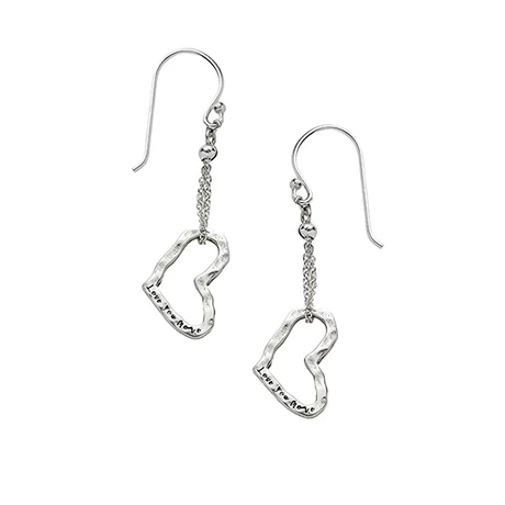 Sweet sterling silver hearts are beautifully textured and bear the hidden message, ālove you moreā lightly engraved on each. The endearing earrings hang 1.75″ from sterling earwires.