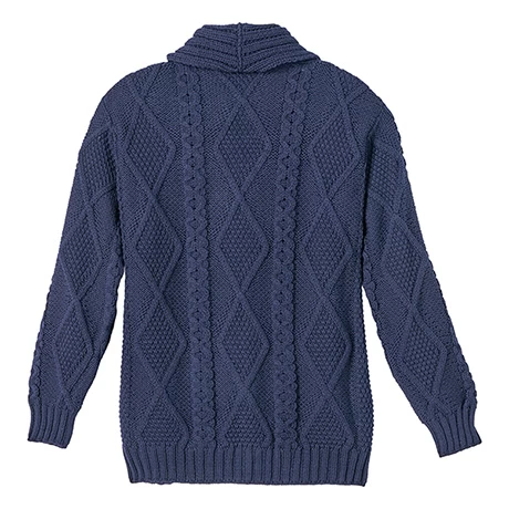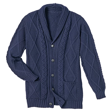 A wardrobe staple for the well-dressed man. Ours has all the right details: shawl collar, traditional stitching, football buttons, front patch pockets. Pure Merino wool, made in the village of Monasterevin, County Kildare, Ireland. Size M hangs 27″. Hand wash. Men’s sizes M-XXL. Specify Charcoal, Oatmeal or Navy.