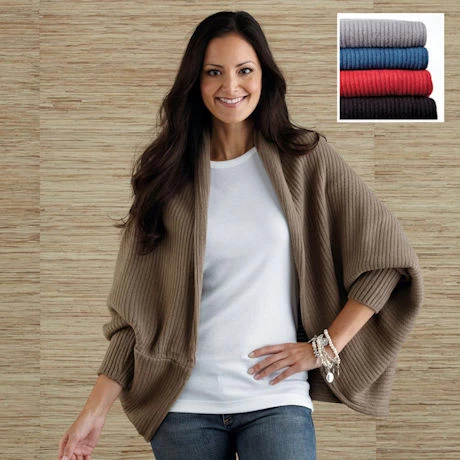 The perfect finishing element to a polished outfit. Blending comfort and easy-to-match color, the soft ribbed knit shrug is styled to layer without bulk. 100% acrylic. One size fits most (sizes 4-20). Hand wash. Imported. Specify Khaki, Gray, Blue, Red or Black.