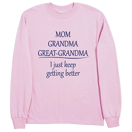 A fancier title and elevated status with every new generation that’s born? That’s the definition of heaven! Sweatshirts are cotton/poly blend, T-shirt is preshrunk 100% cotton. Machine wash. Imported. Sizes S-3XL.
