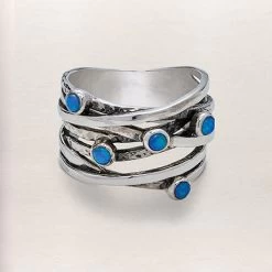 Ancient Greeks believed opals gave people the gift of prophecy and protected them from disease. Wear your very own prophetic ring with 5 Australian doublet opals set in a 0.5″ band of sterling silver. Crafted in Israel, itās available in whole sizes 6-10.