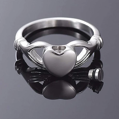 A lovely yetĀ discreet way to keep the memory of loved onesĀ (including pets) who have passed away close to you. The stainless steel ring has a tiny compartmentĀ where you you can place a small amount ofĀ ashes, hair,Ā fur, or soil from a memorable place (funnel kit for filling the urn is included). Personalize withĀ up toĀ 3 letters on the front. Engraved with a laser to ensure your message will not fade over time. Gift box. Specify whole sizesĀ 5-9. Allow 2-3Ā weeks. No rush delivery.