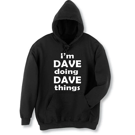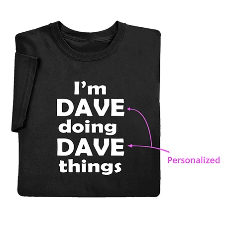 You know that friend who is always getting into their own special brand of mischief? Let them know that you’re on to them with this personalized shirt. Black sweatshirt is 50/50 cotton blend, T-shirt is preshrunk 100% cotton. Sizes S-3XL. Imported. Personalize with name up to 10 characters. The words “I’m”, “doing” and “things” are already pre-printed on the shirt.