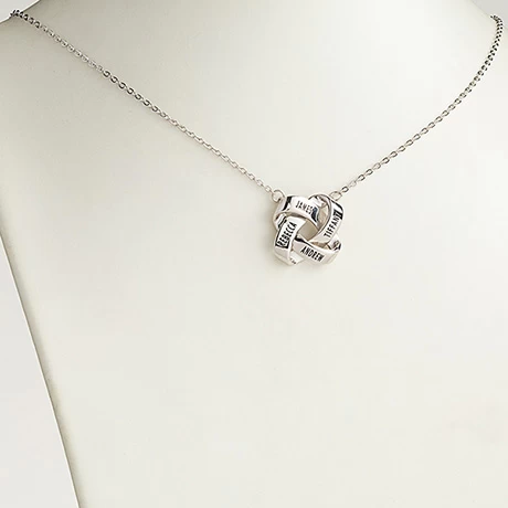Meticulously designed, this unique pendant features interlocking rings you can engrave with up to 4 names. Rhodium plating adds luster and shine. Personalize with 2 to 4 names (up to 10 characters per name). Personalization will appear in all caps. ¾” pendant arrives on a rhodium plated stainless steel chain that adjusts 18-20”. A loving gift for a mother or grandmother.