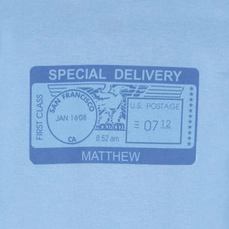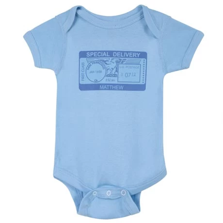 Personalized “Special Delivery” Postmark One-Piece Bodysuit – Blue