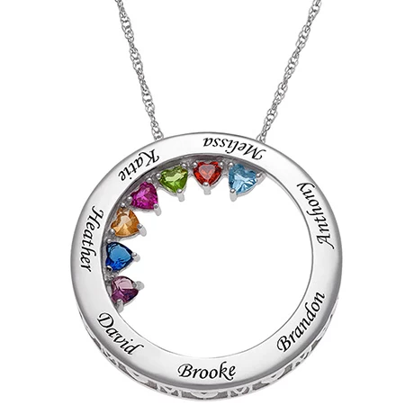 Personalized Sterling Silver MOM Name With Birthstones Circle Pendant