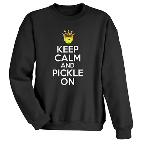 Perhaps a suggestion from the royals is just the encouragement needed to keep things civil during a heated game of pickleball. Black sweatshirt is 50/50 cotton/poly; T-shirt is preshrunk 100% cotton. Machine wash. Imported. S–3XL.