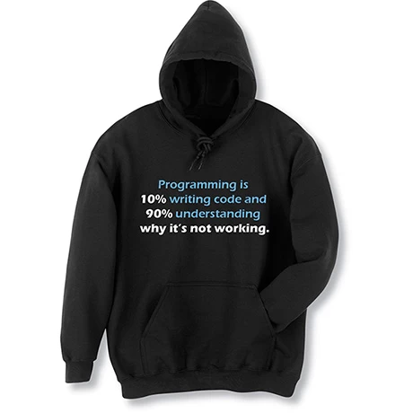 It’s not about what you did right. It’s about falling down a rabbit hole to figure out what you did wrong! Black sweatshirts are 50/50 cotton blend, T-shirt is preshrunk 100% cotton. Machine wash. Imported. S-3XL.