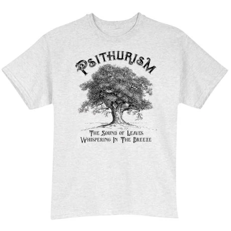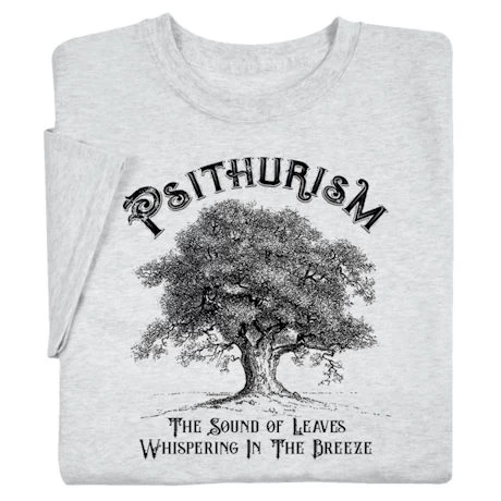 Exclusive! Psithurism: The sound of leaves whispering in the breeze. Now you know, and you can start tossing it around on walks in the park. “Just listen to that psithurism!” From the creator of the popular Facebook page Grandiloquent Word of the Day. Sport Gray sweatshirt is 50/50 cotton blend, T-shirt is preshrunk 90/10 cotton blend. Sizes S-3XL. Imported.