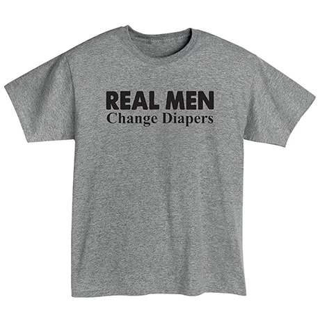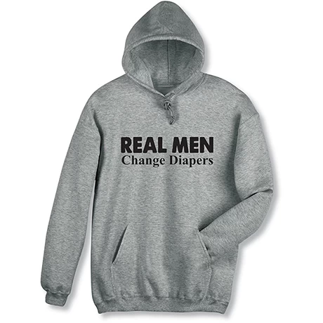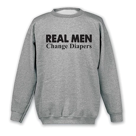 The person who wears this shirt clearly has a firm grasp on what defines a real man. It’s a perfect gift for the fathers in your life. Sport gray sweatshirt is 50/50 cotton blend, T-shirt is preshrunk 90/10 cotton blend. Sizes S-3XL. Imported.