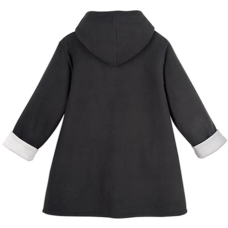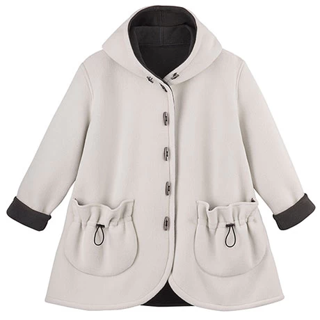When you’re looking at a day filled with running errands, this is the jacket to reach for. You’ll be warm, thanks to its thick polyester fleece fabric. Its generous cut makes it easy to layer over a heavy sweater. And its just-right-length ensures no battles as you slip into and out of the car. What more do you need? How about two colors, both reversible to black! Elastic toggle closures. Sizes S(6-10), M(10-14), L(14-18), XL(18-20),1X(20-22), 2X(22-24), 3X(24-26). M hangs 30″. Machine wash. Imported. Specify Blue or Pearl.
