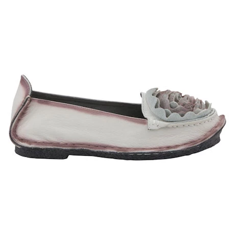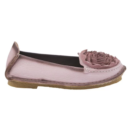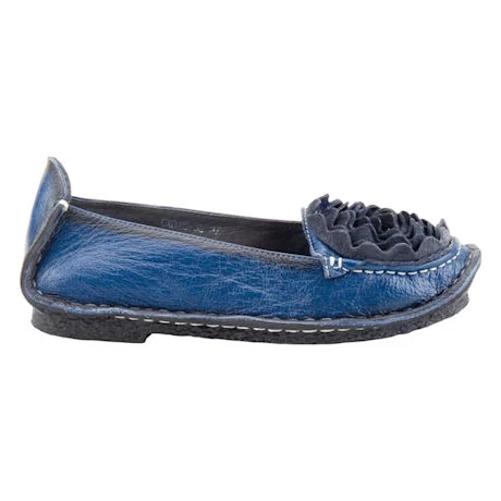 Leather roses bloom on softest full-grain leather. Designed in France, slip-on shoes have hand-painted uppers, comfort padded insoles, hidden elastic at the heels for fit, and contrast stitching. European sizes 35 (American 5), 36 (5½-6), 37 (6½-7), 38 (7½-8), 39 (8½), 40 (9), 41 (9½-10), 42 (10½-11). Imported. Specify Multi, Red, Yellow, Orange, Green, Navy, Natural, Blue, Purple, Pink, or Black. Please allow 2-3 weeks for delivery.