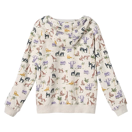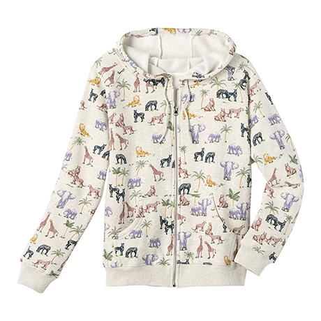 Welcome to animal kingdom in the heart of Africa! Our pale gray safari sweatshirts shows off regal lions, elephants, cheetahs, giraffes and zebras. It’s soft and comfortable in fleecy cotton/poly/spandex. Machine wash. Imported. S-XXL. Specify Zip-Front Hoodie or Crew-Neck.
