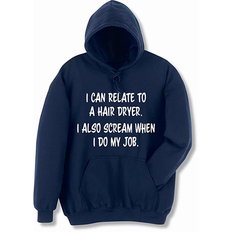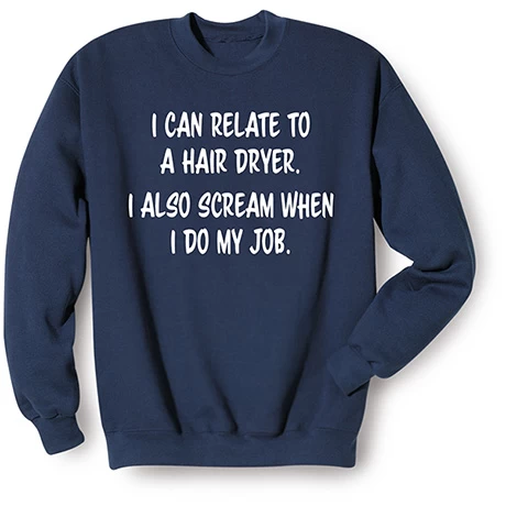 We recommend ear protection. Navy sweatshirt is 50/50 cotton blend, T-shirt is preshrunk 100% cotton