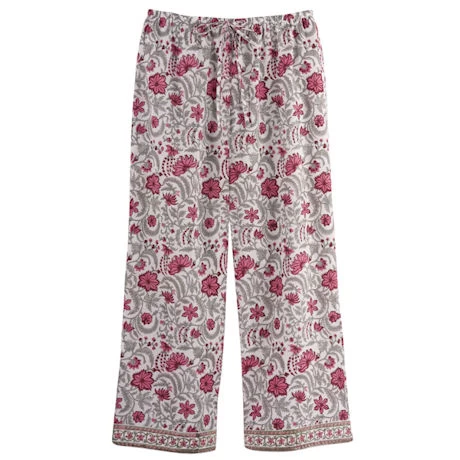 You’ll love these lightweight cotton pants so much, you’ll want them in every color! They’re cute in fun prints with contrasting trim and extra comfortable in pure woven cotton. The versatile capri length is great for lounging at home or running errands. Comfy elastic drawstring waist. Machine wash. Imported. S(4-6), M(6-8), L(10-12), XL(14-16), 1X(18-20), 2X(20-22). Size M inseam 23″. For a roomier fit, please order one size up.