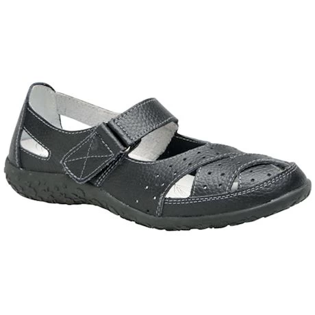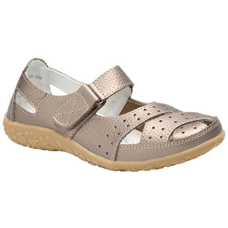 With high-quality genuine leather uppers and linings that are naturally soft, light, and airy – you’ll think you’re wearing sandals! Comfy padded insoles remove to accommodate custom orthotics. Velcro cross strap design adjusts easily. TPR outsole with a cute floral pattern tread gives super traction. 1″ heel. No rush delivery. Specify European size & width: 36(5½-6), 37(6½-7), 38(7½-8), 39(8½), 40(9), 41(9½-10), or 42(10½-11); Medium, Wide, or Wide Wide.